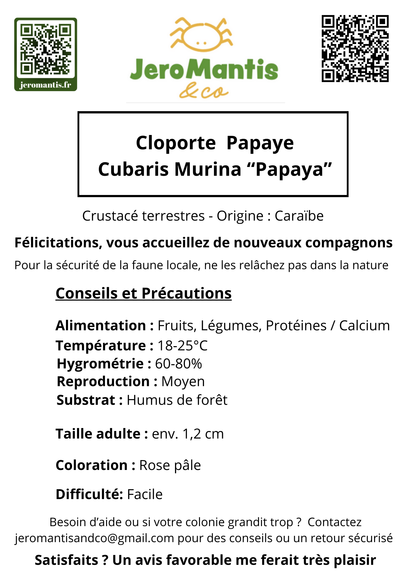 Espèce robuste et facile à maintenir, idéale pour les débutants ou pour terrarium bioactif très humide.