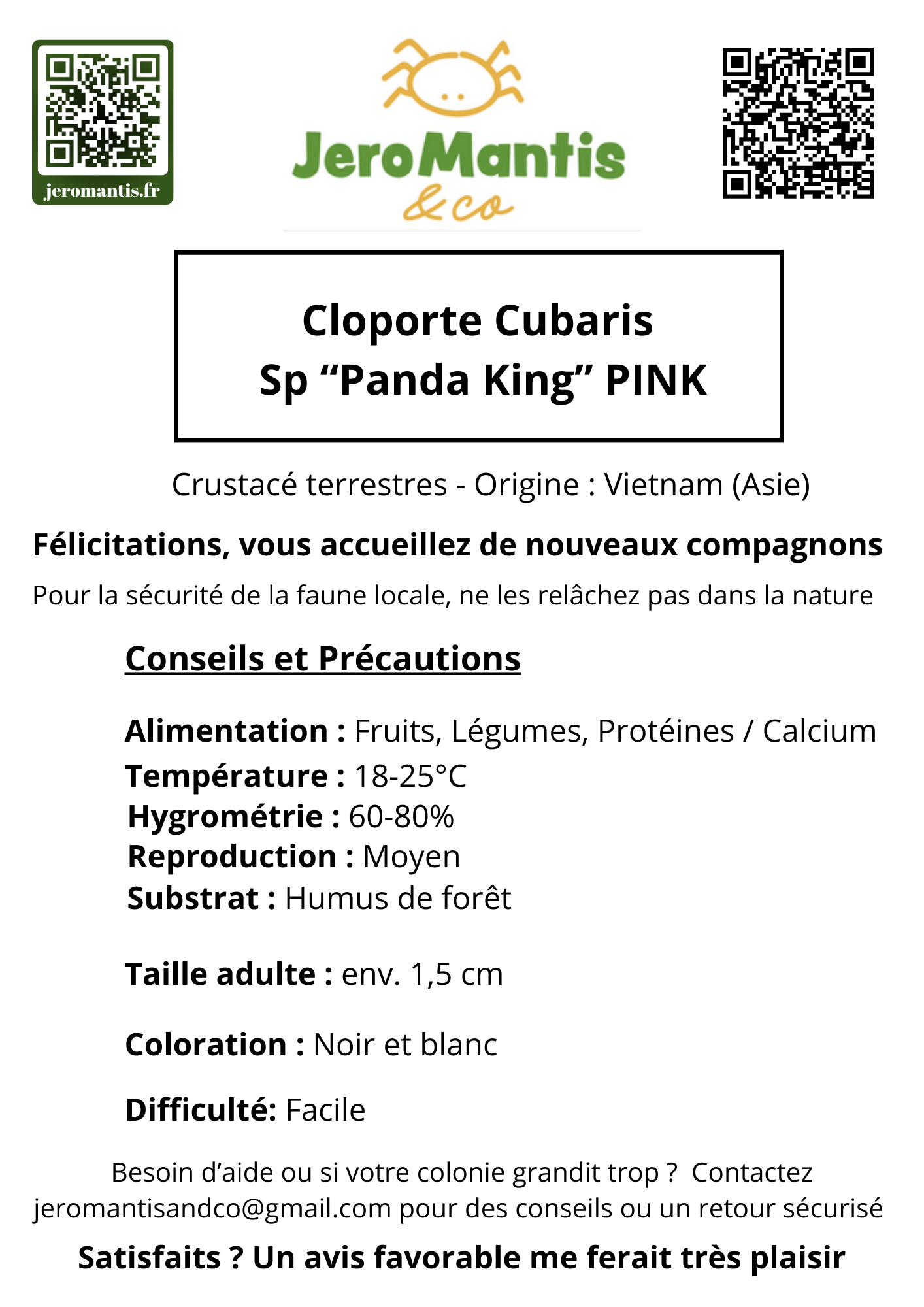 Facile d’élevage, bien que légèrement plus lent à se développer que la moyenne des isopodes.