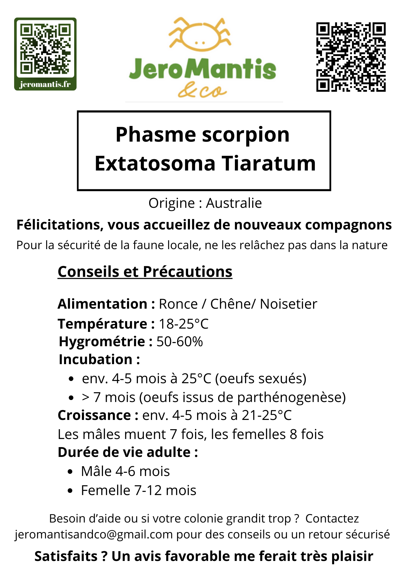 J’ai commandé des phasmes scorpion, r.a.s. Très bien emballé
